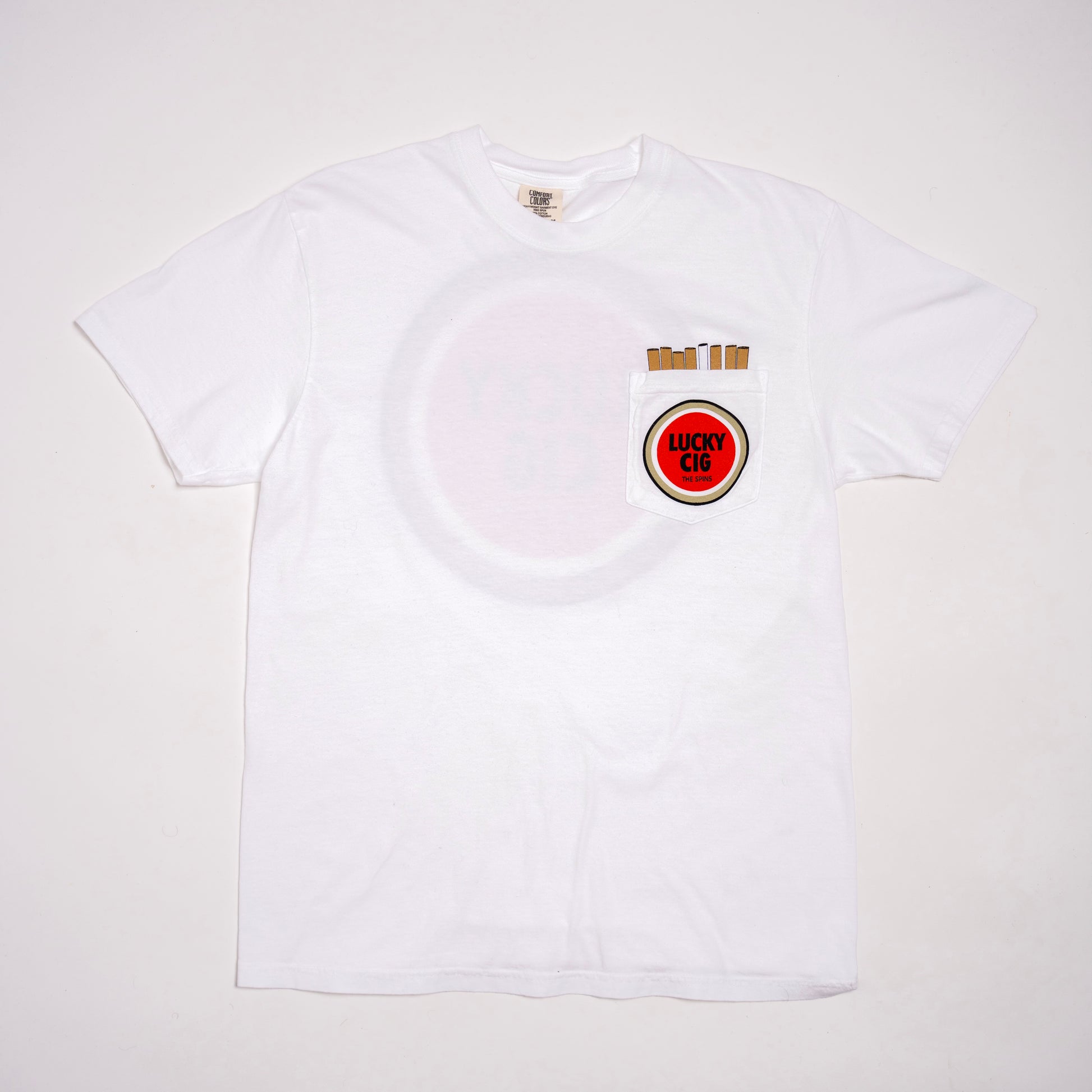 The Spins "Lucky Cig" pocket tee, featuring cigarette pack pocket as well as graphic on the back of shirt.